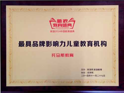 11月27日,经过云集中国教育界权威的评委会慎重评选和网络投票,托马斯教育机构脱颖而出,连获“2014年度具投资价值教育连锁机构”和“2014年度具品牌影响力儿童教育机构”两项重磅大奖。
