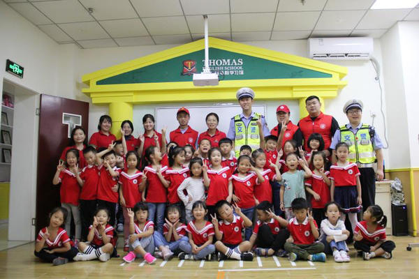 9月12日上午9点30分,郑州市交警九大队民警来到郑州市托马斯学习馆,以“弘扬中国传统文化 交通安全记心间”为主题,开展安全文明出行宣传教育活动。既让学生了解和体验了中国传统文化,也把交通安全知识带给了学生们。